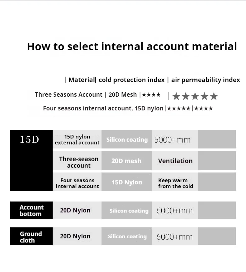 Outside Tent Waterproof Index: >3000 mm