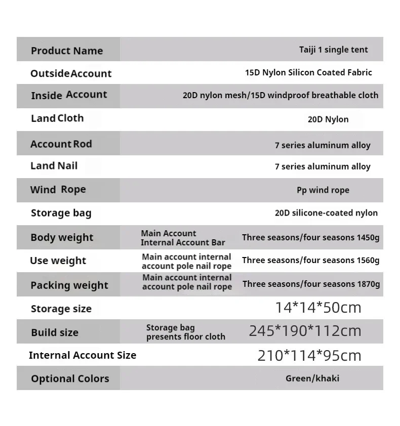 Product Name: 3F TAIJI 1 Single Tent Ultralight Camping Tent