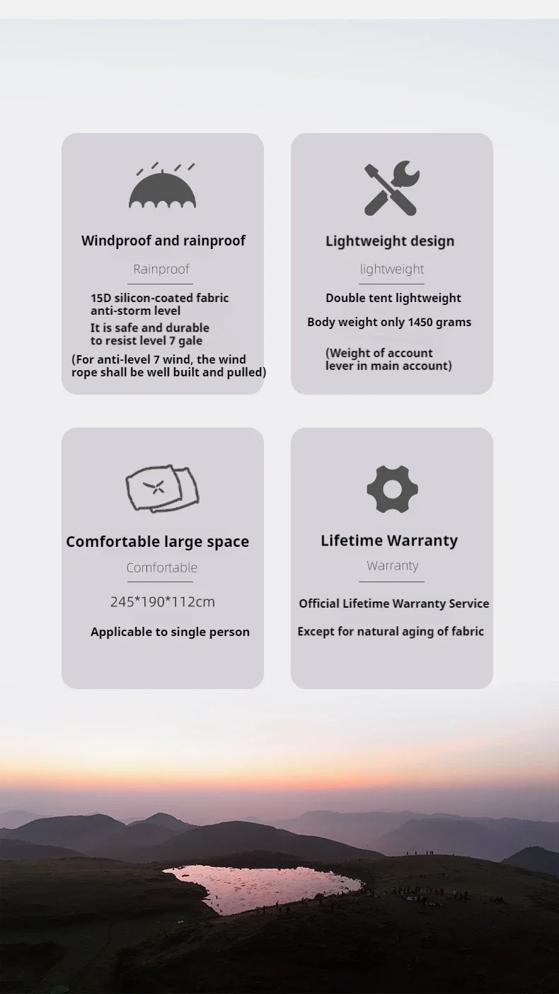 3F TAIJI 1 Single Tent Ultralight Camping Tent Outdoor Portable Double Layer Waterproof Climbing Hiking 15D Nylon Tents