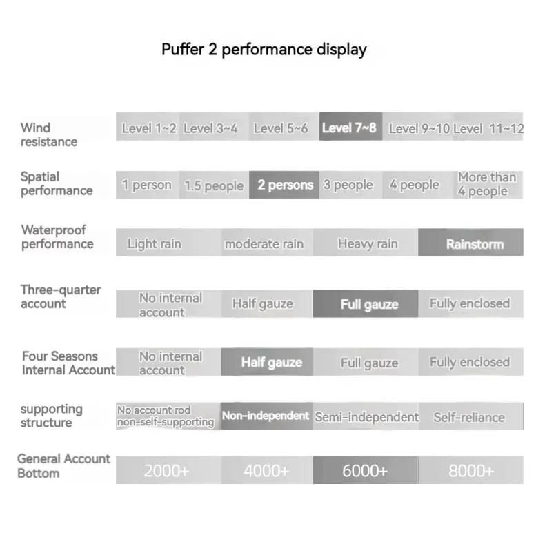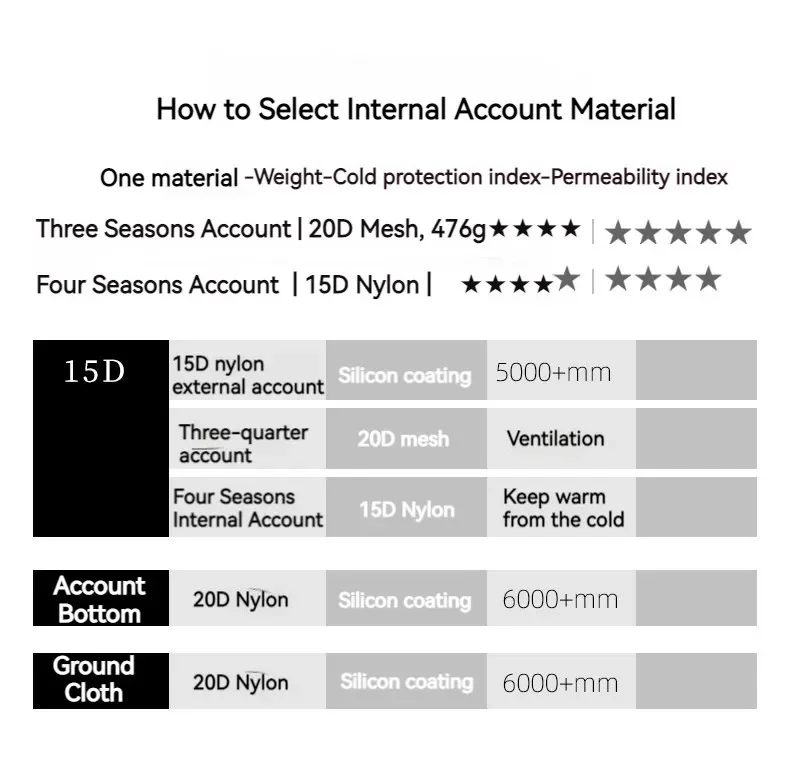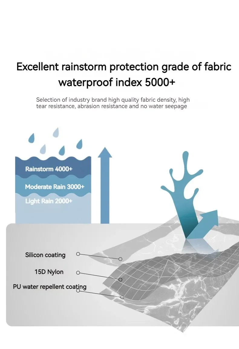 Material: 15D nylon coated silicon, 20D nylon, mesh, aluminum alloy, PP, 20D nylon coated silicon