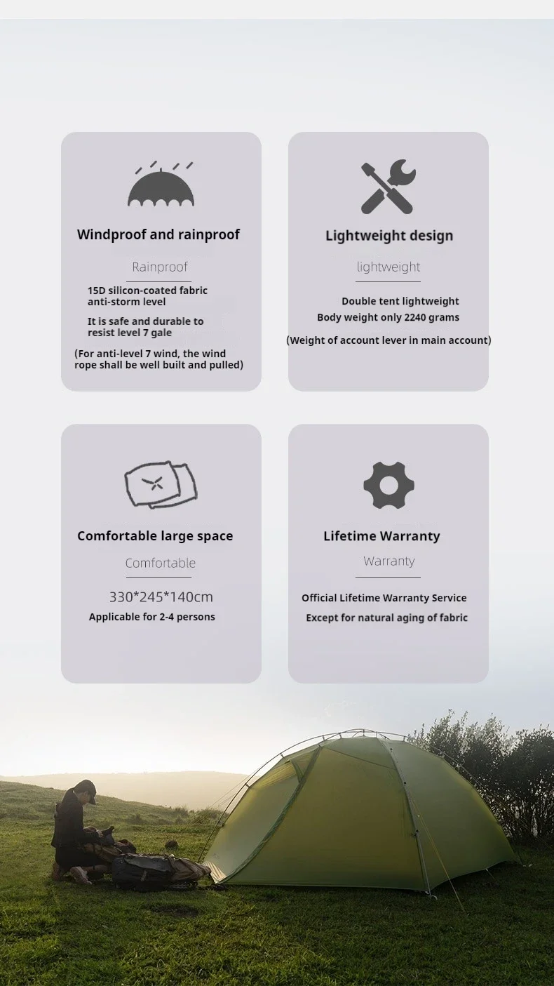 3F UL TAIJI3 3 People 15D 3 or 4 Season Tent