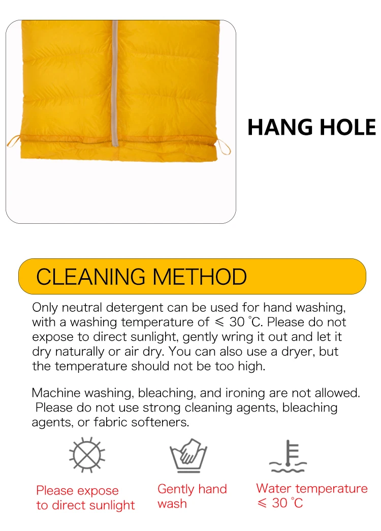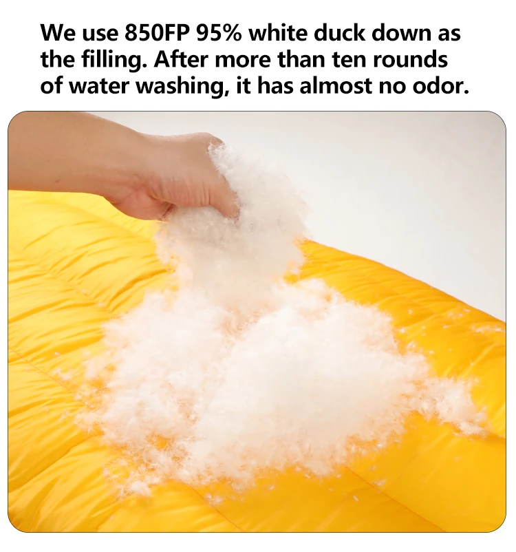 | Filling | 95%white duck down(850+ Fill Power) or OEM |